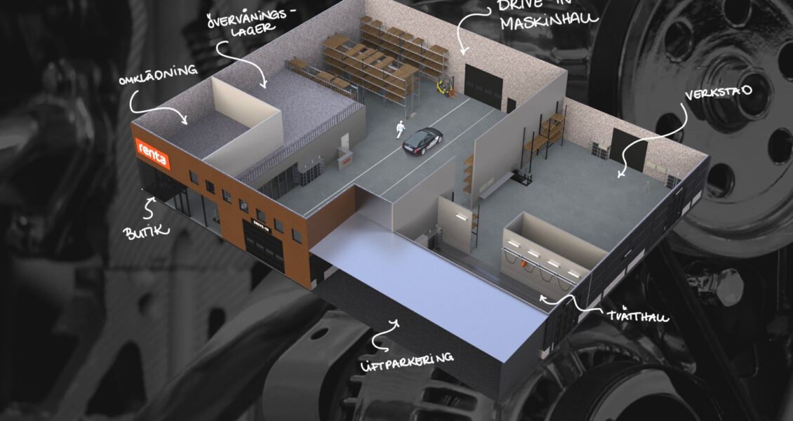 Genom ett tiotal djupintervjuer, workshops med depåer och samtal med branschens olika delar fick hon fram ett spännande resultat. Ett resultat som svarar på de hållbarhets- och miljökrav som råder idag blev det ett koncept som baseras på en “Drive-in”-lokal, där tanken är att kunderna ska kunna köra in sina bilar för att hela uthyrningsprocessen ska kunna ske på ett och samma ställe. Maskinerna lastas och lossas direkt på kundernas bilar/släpvagnar, och hyresavtalen skrivs i samma lokal bakom uthyrningsdisken i maskinhallen.